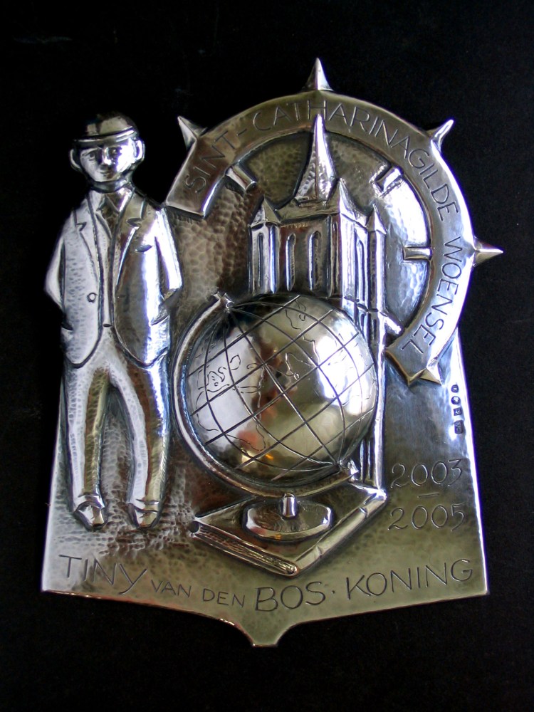Hieronder een kleine selectie van door Leo ontworpen en vervaardigde koningsschilden. Bezoek de pagina zilversmid voor meer informatie over het vak en een video waarin Leo laat zien hoe hij een koningsschild maakt.
