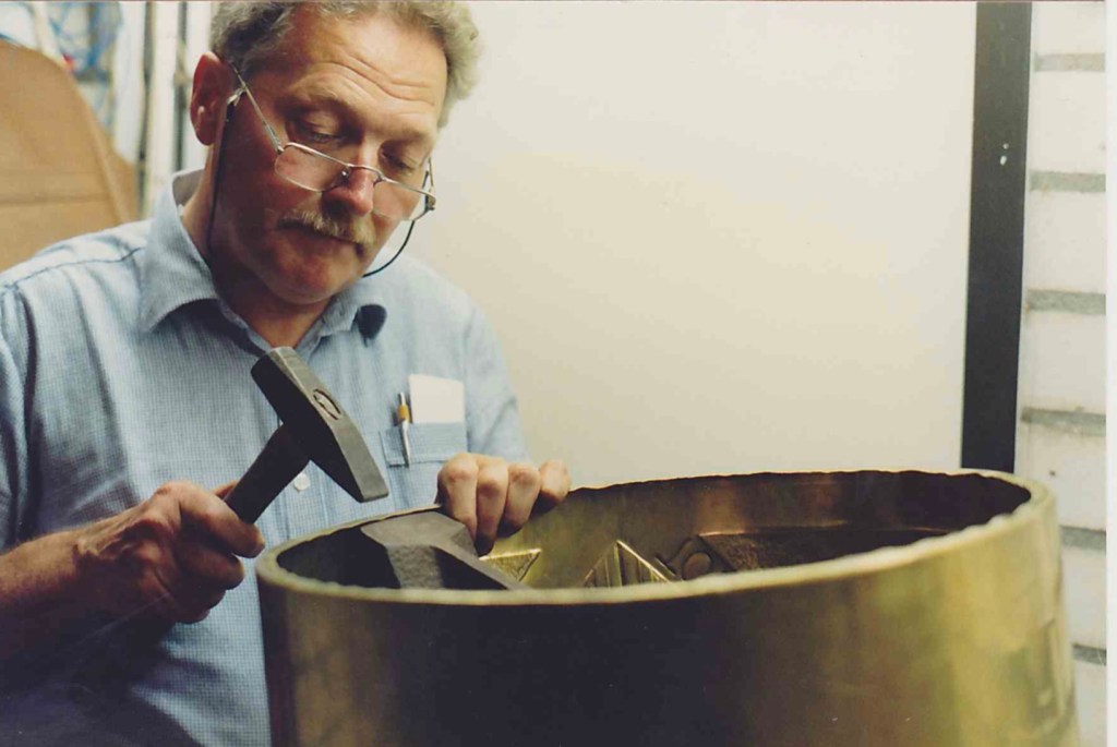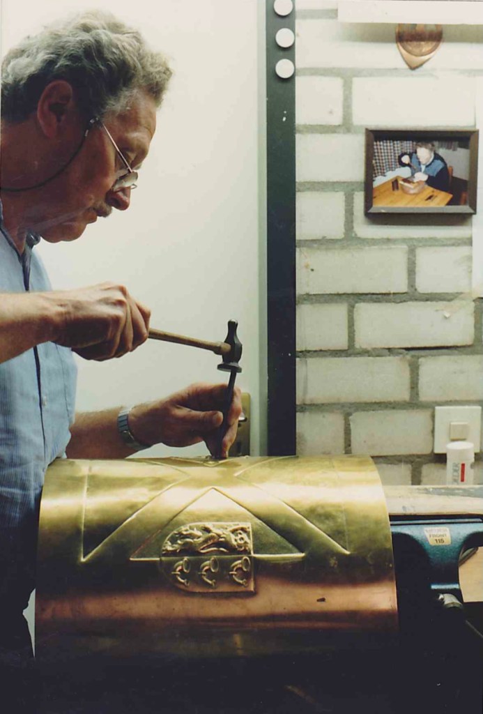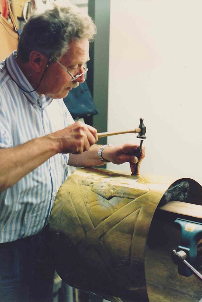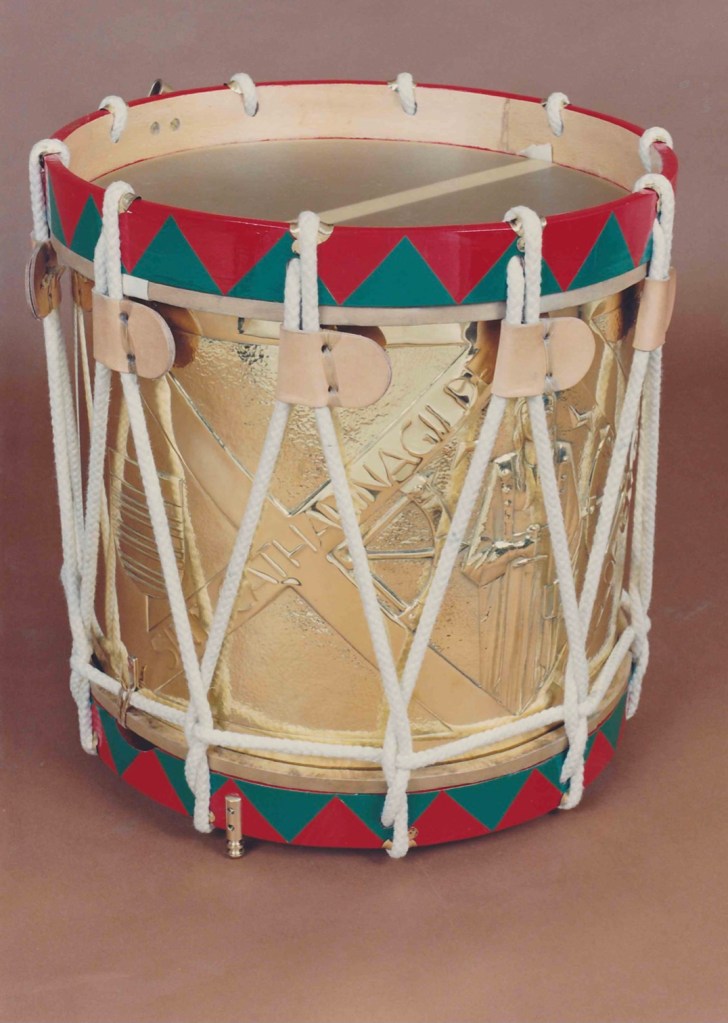 Het maken van een trom is een oud ambacht. Zeker wanneer het een gildetrom betreft waar in het koper of messing een afbeelding van de patroonheilige moet worden gedreven.