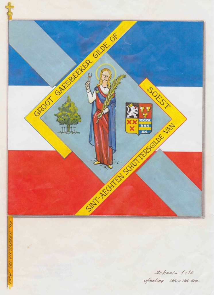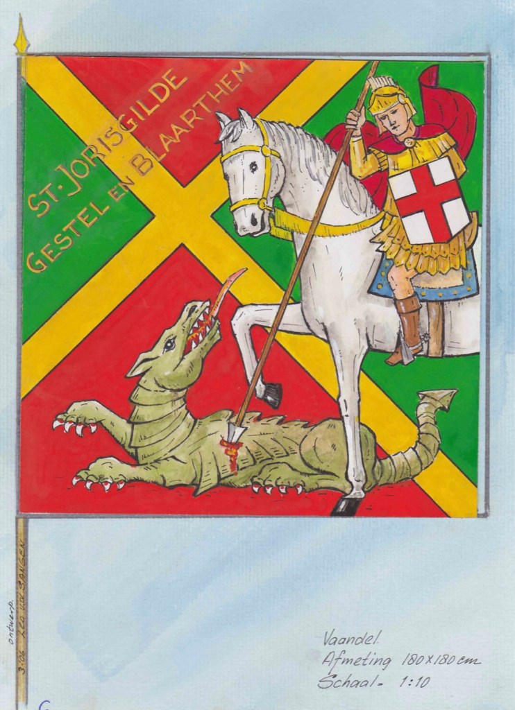 Leo heeft meer dan 100 vaandels en standaarden ontworpen voor tal van gilden in Brabant, Limburg en daarbuiten. Hieronder een kleine selectie van ontwerpen van vaandels uit zijn persoonlijke archief.